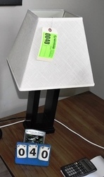 Table Contents: Hanging Lamp, Desk Lamp, and Flower Vase