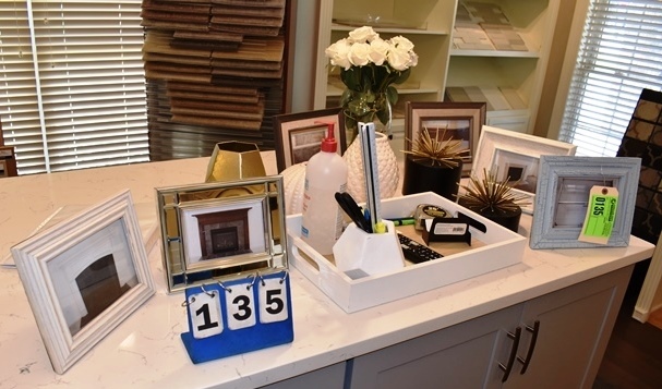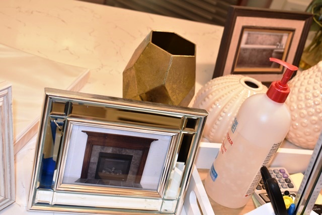 Countertop of Miscellaneous Items, Picture Frames and Decorations
