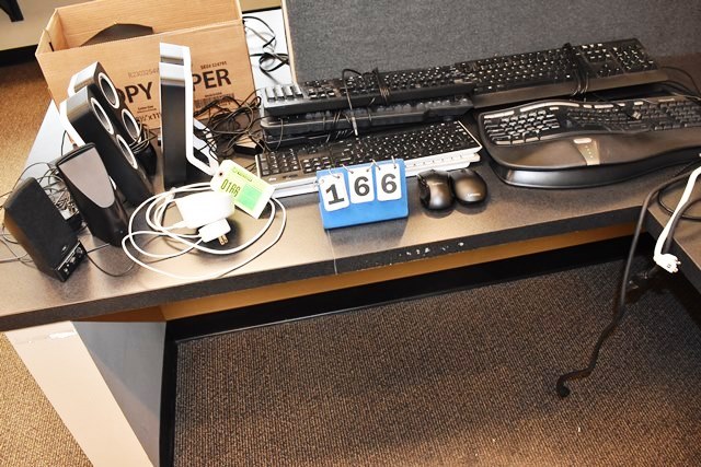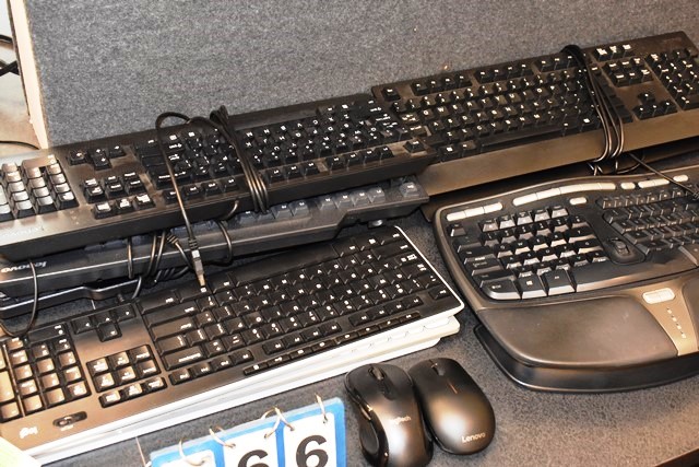 Assorted Lenovo & Rosewill Keyboards, Speakers with Microsoft Ergonomic Keyboard