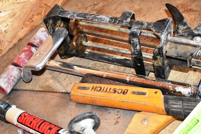 Caulk Gun, 2-4' Telescoping Pole, Bostitch Stapler, Etc.
