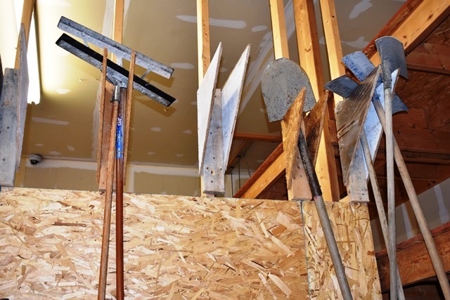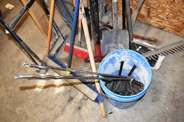 Shovels, Brooms, a Rake, Post Hole Digger, Fence Post Pounder, Etc.