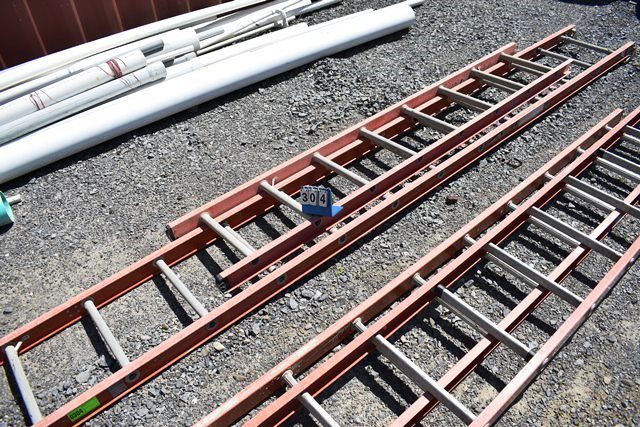 2 Fiber Glass Extension Ladder Halves, 1-8' Without Feet & 1-13' With Feet