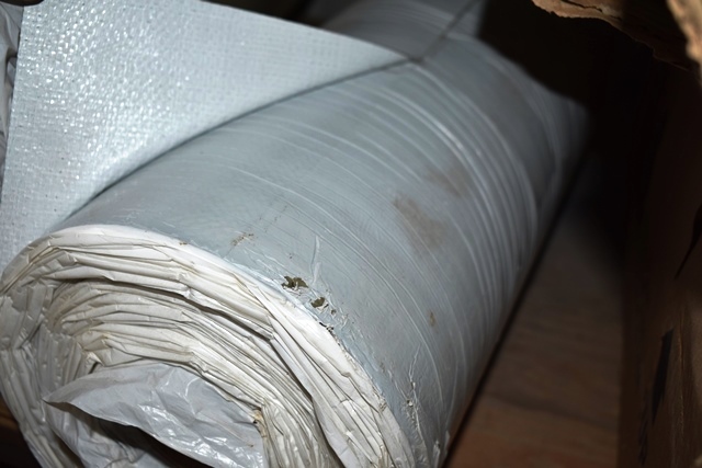Box of 1/8" x 1" x 50' Slast Rolls, Roll of Roofing Adhesive, Rolls of Concrete Water Stop