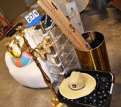 36" W Plexiglass Stand, 43" x 24" Glass top Table, Mirror, Etc.