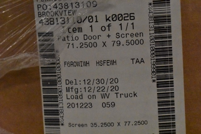 SIMONTON 71 1/4 X 79 1/2 PATIO NEW CONTRUCTION RH 6 9/16 WH