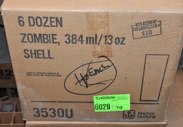 Lot of approx 70 Anchor Hocking 13 oz. Zombie Shell Glasses
