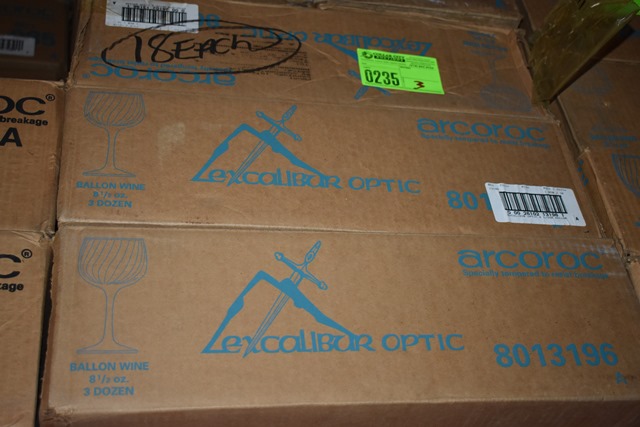 Lot consisting of 2 full cases (approx 3 doz per case) and a partial case (containing approx 18) of Arcoroc 8.5 oz Bellon Wine Glasses