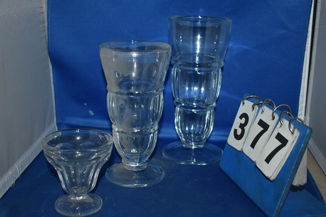 Lot of 3 cases of Soda Glasses, various sizes including 12 oz. and up (Approx. 47 total glasses) and a partial case of what is believed to be Sundae Glasses
