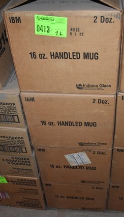 Lot of 4 cases Indiana Glass 16 oz Handled Mugs (approx 2 doz per case)