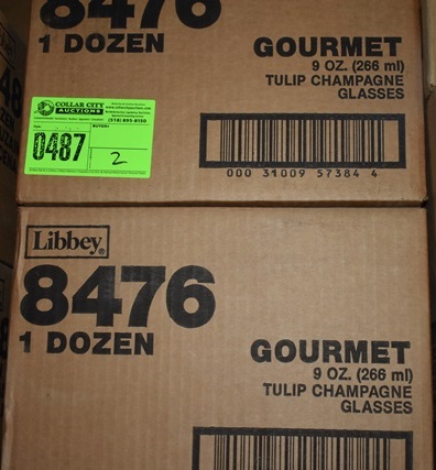 Lot of 2 cases Libbey 9 oz Tulip Champagne Glasses (approx 1 doz per case)