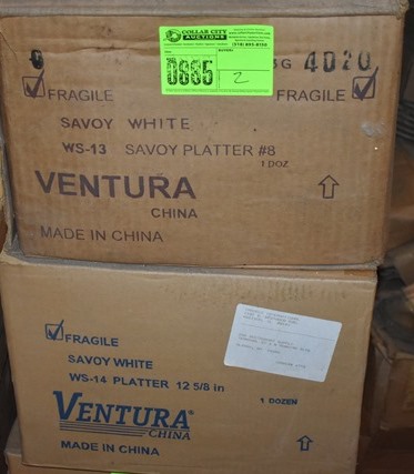 Lot of 1.5 cases Ventura Savoy White assorted size platters, approx 1 doz per case