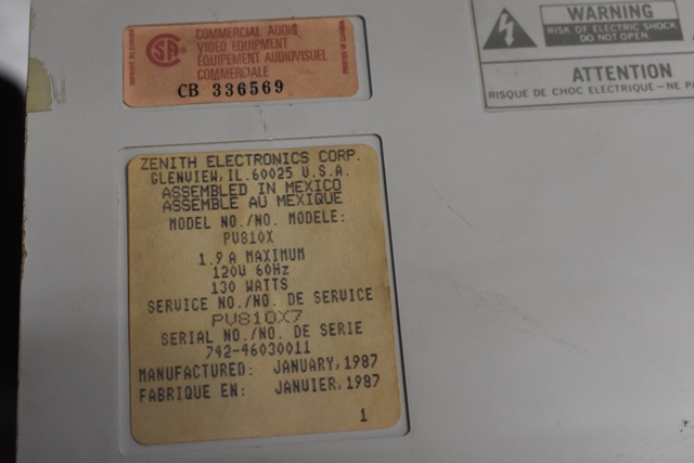 Zenith Model PU810X Video Projection Monitor