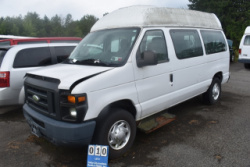 2014 Ford E250 High Top VIN# 1FTNS2EW9EDA14312, Approx. Mileage 43,441 +/-, Wheelchair Lift, Wheelchair Ramp on Side Door, 4.6L V8, Automatic, Starts and Moves with Jump, Transferable Paperwork Available At Removal. Located at: 436 Quaker Road, Queensbury, NY 12804.