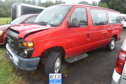 2011 Ford E150 Passenger Van VIN# 1FMNE1BW5BDB29177, Approx. Mileage 81,638 +/-, Two Rows of Seating, 4.6L V8, Automatic, Starts and Moves with Jump, Transferable Paperwork Available At Removal. Located at: 436 Quaker Road, Queensbury, NY 12804.
