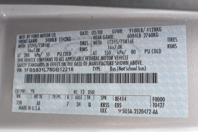 2008 Ford E350 VIN# 1FBSS31L78DB12218, Approx. Mileage 62,002 +/-, Wheelchair Lift, Starter Is Not Engaging, Running Condition Unknown, Transferable Paperwork Available At Removal. Located at: 436 Quaker Road, Queensbury, NY 12804.