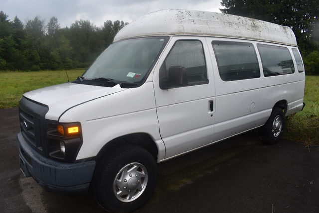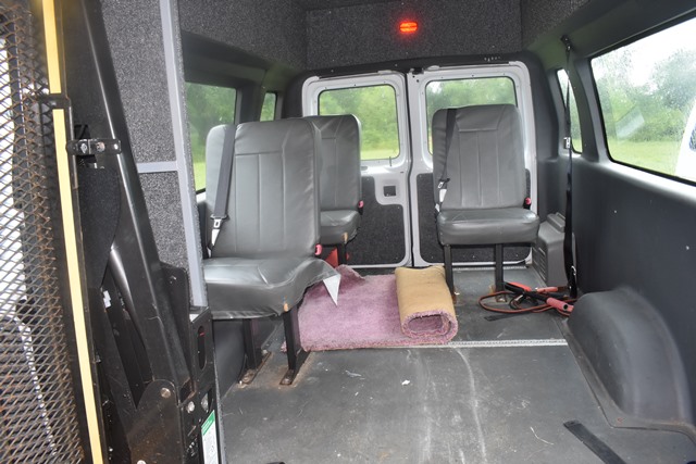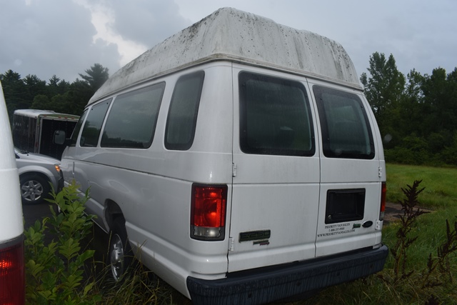 2014 Ford E250 High Top VIN# 1FTNS2EW9EDA14312, Approx. Mileage 43,441 +/-, Wheelchair Lift, Wheelchair Ramp on Side Door, 4.6L V8, Automatic, Starts and Moves with Jump, Transferable Paperwork Available At Removal. Located at: 436 Quaker Road, Queensbury, NY 12804.