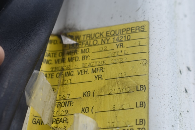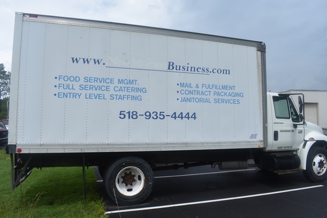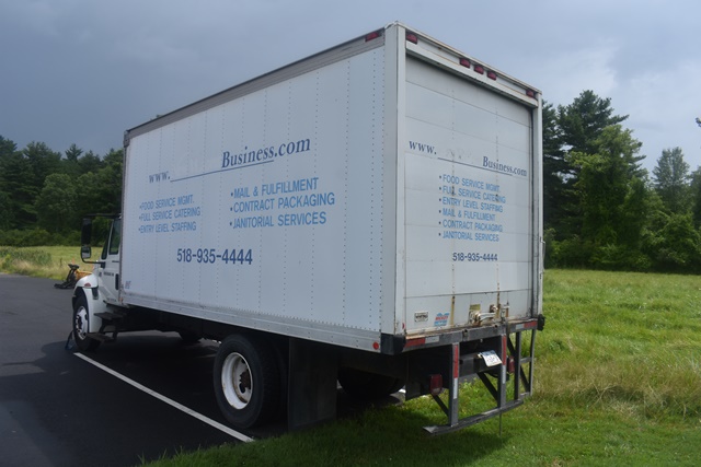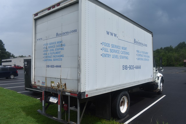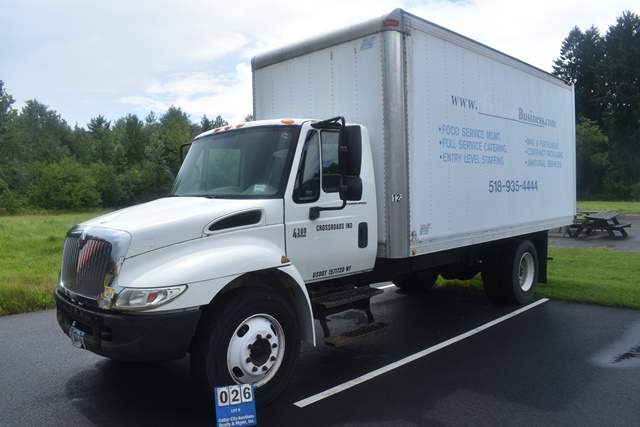 #26 – 2003 International 4300 Box Truck VIN# 1HTMMAAM6H598049, Approx. Mileage 73,784 +/-, Starts, Runs and Moves. Has A Broken Brake Line, Hydraulic Brakes, Diesel, Automatic, DT466 Engine, GVWR 25,500, 10R225 Tires, 18' Box, Transferable Paperwork Available At Removal. Located at: 436 Quaker Road, Queensbury, NY 12804.