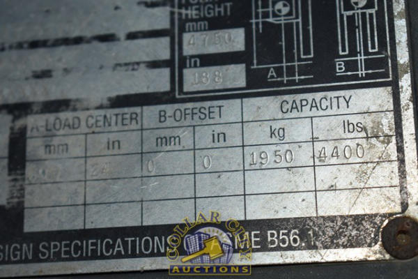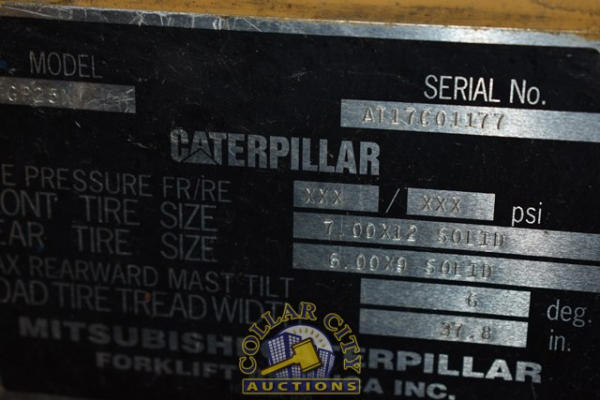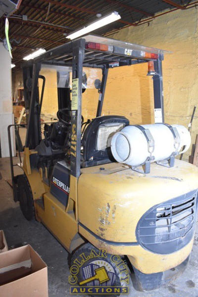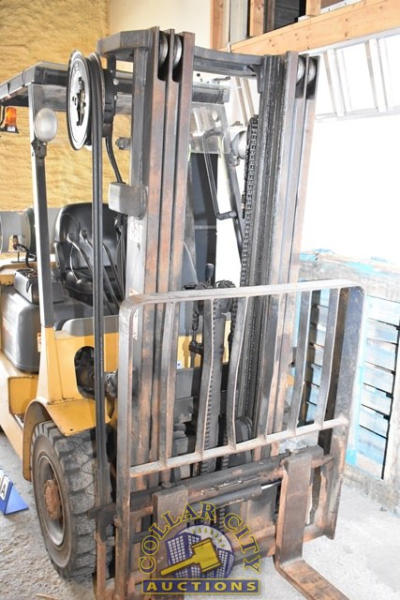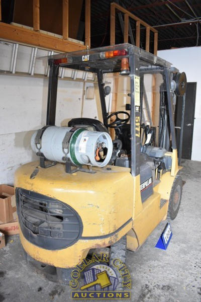 CATERPILLAR MODEL GP25K PROPANE FORKLIFT, APPROX. 6115 HOURS, INCLUDES ADDITIONAL PROPANE TANKS, TRIPLE MAST