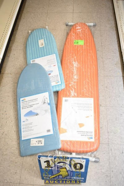 IRONING BOARD, ADJUSTABLE HEIGHT 27" - 36", ALSO INCLUDES TWO TABLE TOP IRONING BOARDS