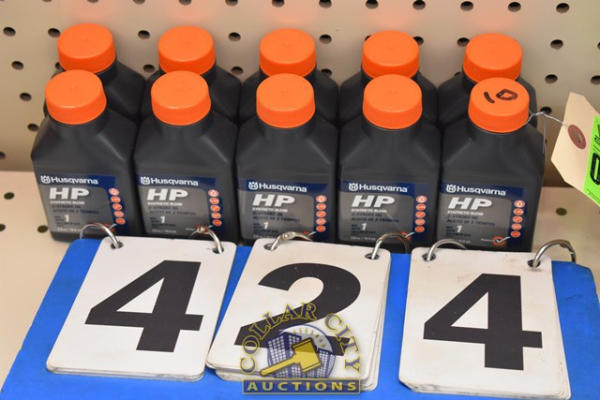 LOT OF 10 BOTTLES OF HUSQVARNA HP SYNTHETIC BLEND, 2-STROKE OIL, 2.6 OZ CONTAINERS