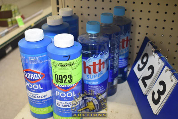 LOT OF 4 BOTTLES OF CLOROX POOL AND SPA GREEN ALGAE ELIMINATOR AND HTH SUPER CLARIFIER