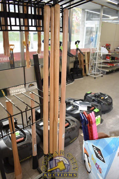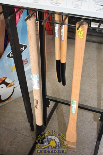 LOT OF HAMMER AND SMALL SLEDGE HAMMER HANDLES AND PICK AX HANDLES