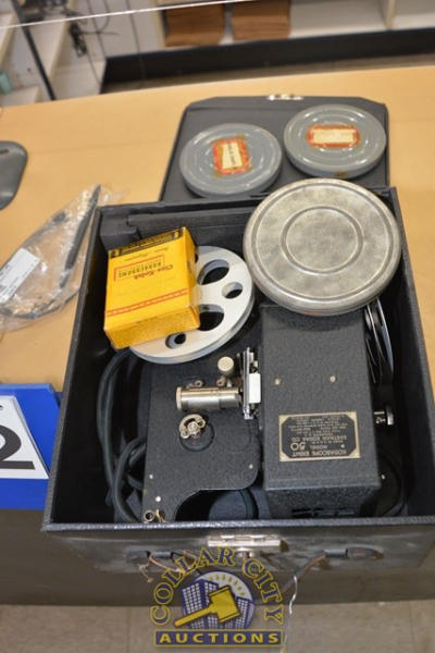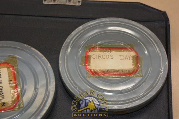 KODASCOPE MODEL 50 WITH FILMS INCLUDING CHARLIE CHAPLIN'S CIRCUS DAY, HERE COMES THE CIRCUS, PROJECTOR IN BOX
