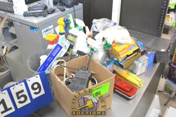LARGE LOT OF CLEANING SUPPLIES AND LEAD CORDS