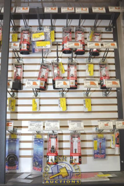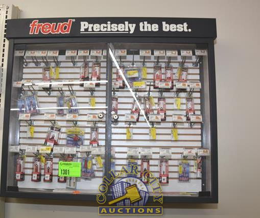 FREUD ROUTER BIT DISPLAY CABINET WITH ASSORTED ROUTER BITS
