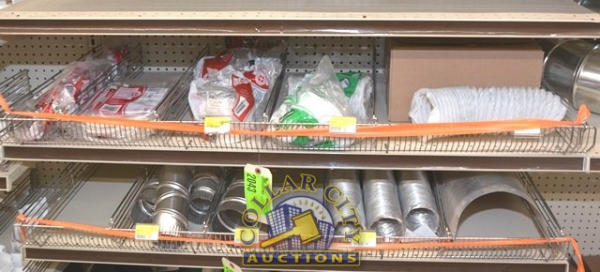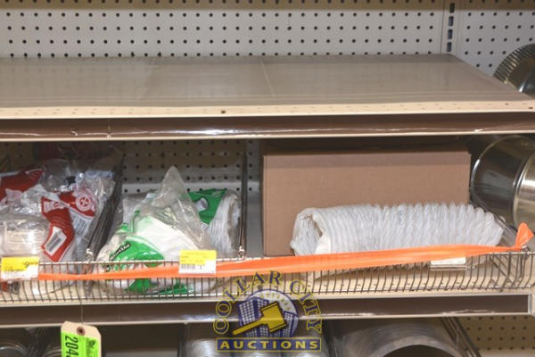 SHELF LOT OF DRYER VENT DUCT, NYLON ADJUSTABLE CLAMPS, SPRING CLAMPS