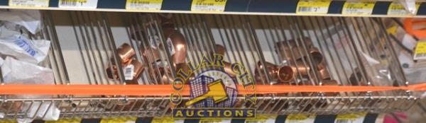 SHELF LOT OF GALVANIZED AND COPPER FITTINGS, COPPER FITTINGS APPEAR TO BE ALL 3/4", GALVANIZED ARE 1/2"