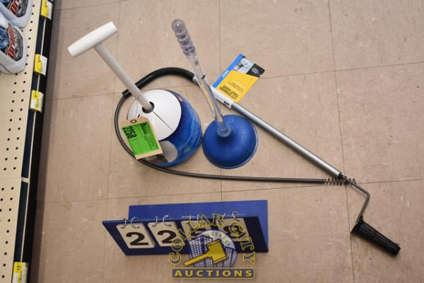 LOT OF PLUNGERS AND SNAKE