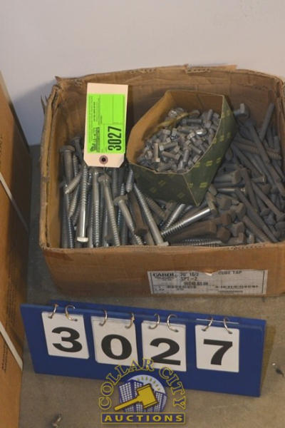 BOX LOT OF LAG BOLTS AND CARRIAGE BOLTS AND ASSORTED BOLTS