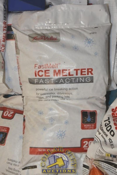 PARTIAL PALLET LOT OF APPROX 15 BAGS OF FAST MELT ICE MELT, 20 LB BAGS