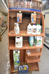 BONA DISPLAY RACK WITH CONTENTS CONSISTING OF PREMIUM SPRAY MOP, FLOOR CLEANERS, AND DISPLAY SCREEN