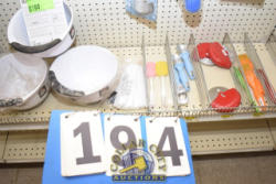 SHELF LOT OF ASSORTED UTENSILS AND BOWLS