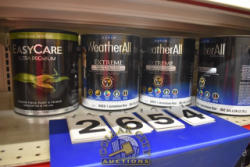 LOT OF 3 GALLONS WEATHERALL EXTERIOR RED PAINT AND 1 GALLON OF EASY CARE PURE WHITE PASTEL BASE