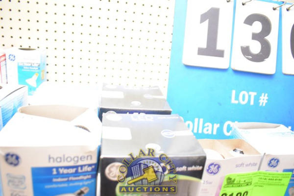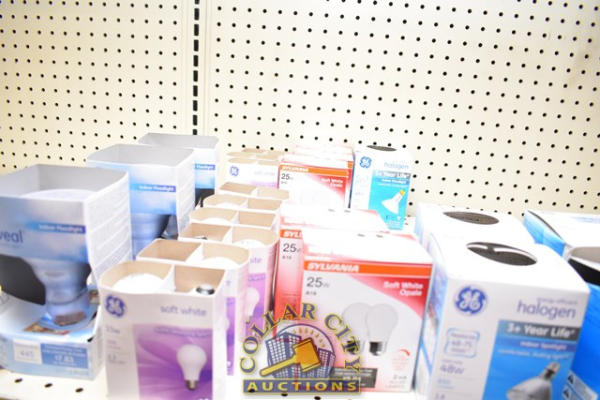 SHELF LOT OF LED AND REGULAR LIGHT BULBS
