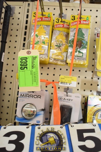 LOT OF ASSORTED AIR FRESHENER TREES, HIDE-A-KEYS, AND BLIND SPOT MIRRORS