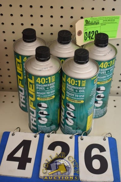 LOT OF 5 CANS OF TRUFUEL, 40:1, FUEL OIL MIX