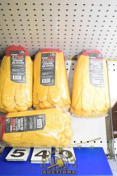 LOT OF 4 PACKAGES OF SIZE XL (6 PAIR PER PACKAGE) CHORE GLOVES