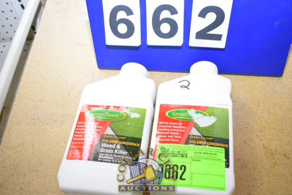 LOT OF 2 CONTAINERS OF GREEN THUMB, 41% SUPER CONCENTRATED WEED AND GRASS KILLER, 32 OZ.