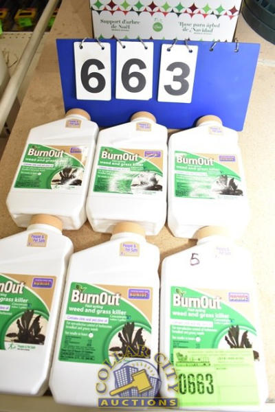 LOT OF 5 CONTAINERS OF BONIDE BURN OUT FAST ACTING WEED AND GRASS KILLER CONCENTRATE
