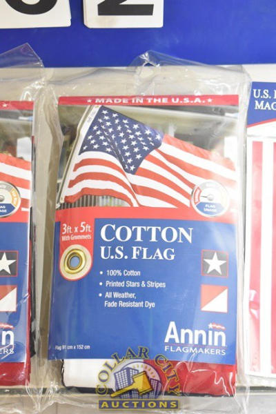 LOT OF 2 3' X 5' US FLAGS, 100% COTTON