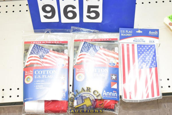 LOT CONSISTING OF US FLAG MAGNET AND 2 3' X 5' US FLAGS