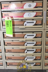 ORGANIZER BIN WITH CONTENTS CONSISTING OF METRIC SOCKET HEAD CAP SCREWS, STAINLESS STEEL SPLIT AND LOCK FLAT WASHERS, METRIC HARDWARE