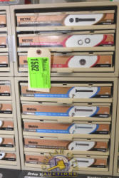 ORGANIZER BIN WITH CONTENTS CONSISTING OF METRIC NUTS, WASHERS, SOCKET CAP SCREWS, SOCKET HEAD CAP SCREWS