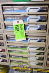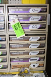 ORGANIZER BIN WITH CONTENTS CONSISTING OF METRIC STAINLESS STEEL SOCKET CAP SCREWS, SHEET METAL SCREWS, ETC.