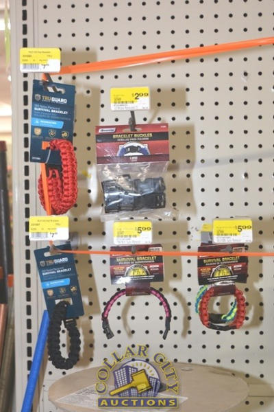 LOT OF BRACELET BUCKLES, SURVIVOR BRACELETS, REFLECTIVE POLY ROPE