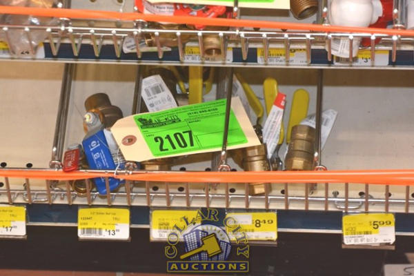 SHELF LOT OF VALVES, BALL VALVES, HOSE BIBS